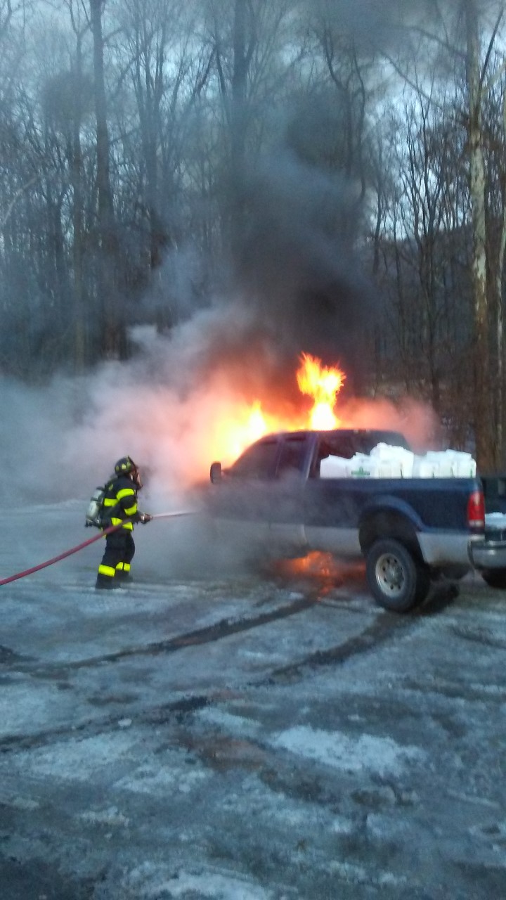 While on the medical call, the engine was dispatched to assist Exeter (Co25) for a reported vehicle fire at Butter Lane & Bingaman St. Deputy 1-1(Eisenhard) reported a large column of smoke visible from the medical call location. On arrival Engine 1 reported a well involved pickup truck and pulled two lines in order to extinguish the fire. Crews were able to clear the scene by 6p.m.